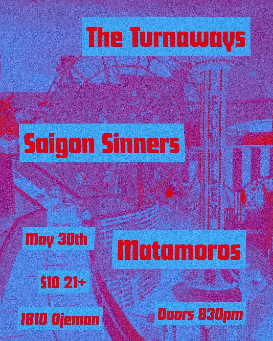 Saigon Sinners at 1810 Ojeman in Houston, TX Saturday, May 30, 2026 9:30 PM Sunday, May 31, 2026 2:00 AM 1810 ojeman (map) Google Calendar ICS Buy Tickets